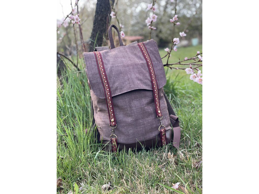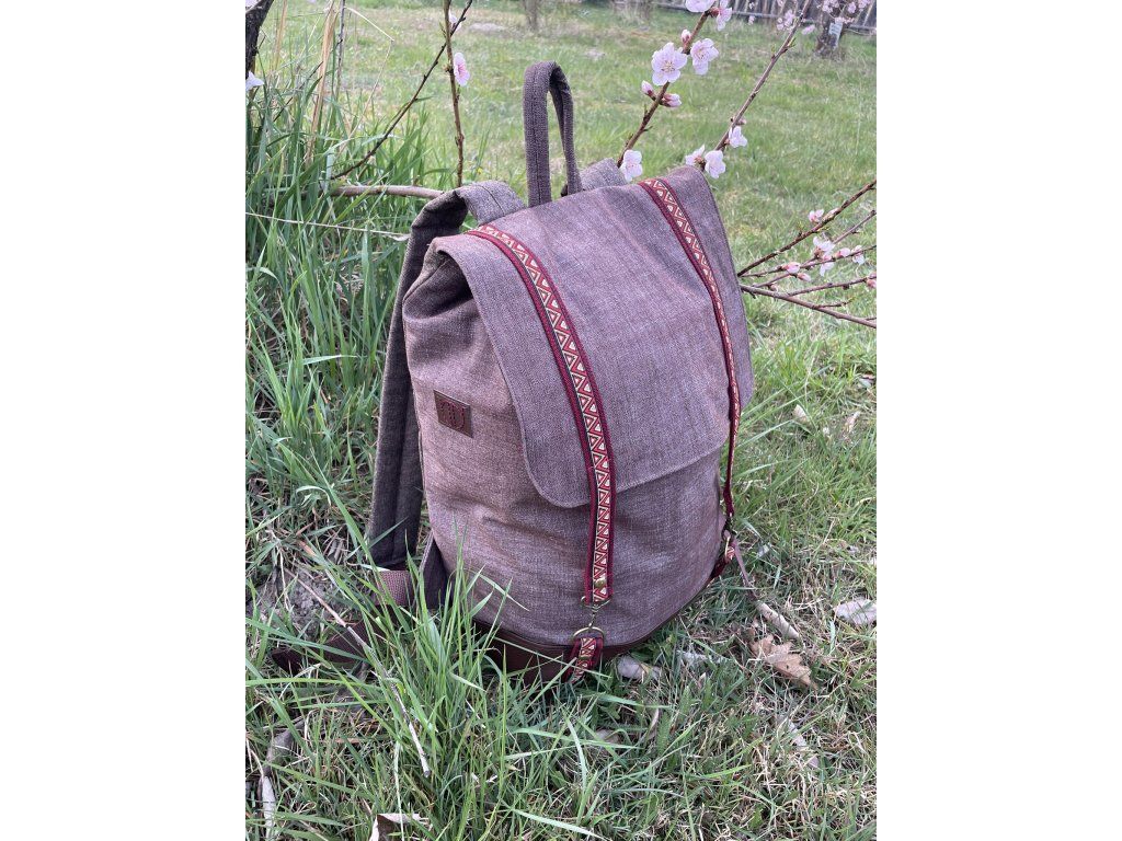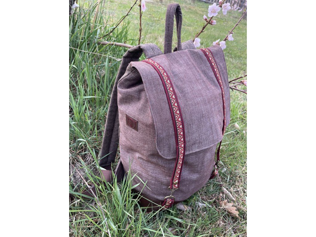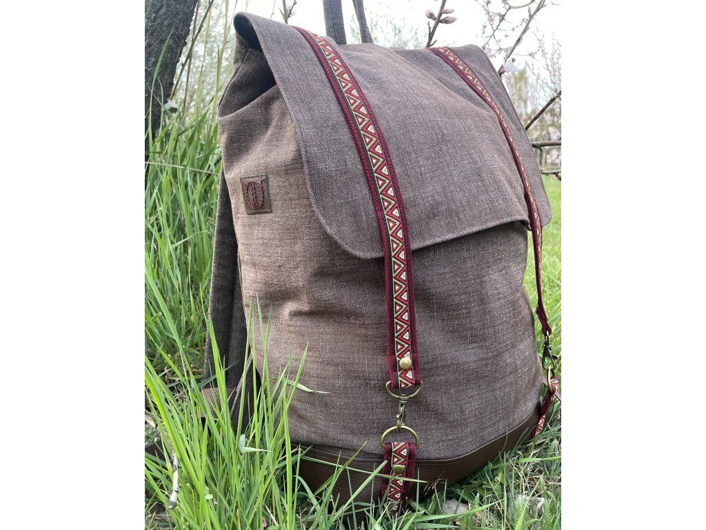 Veškeré části batohu jsou ušity buďto ze zbytků nepromokavé kočárkoviny, nebo jsou z kousků zbytkových či upcyklovaných látek a rovněž podloženy nepromokavou kočárkovinou, takže neproprší. Spodek batohu je vyztužen odolnou čalounickou koženkou.