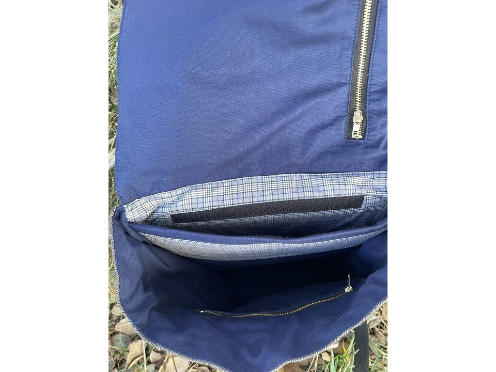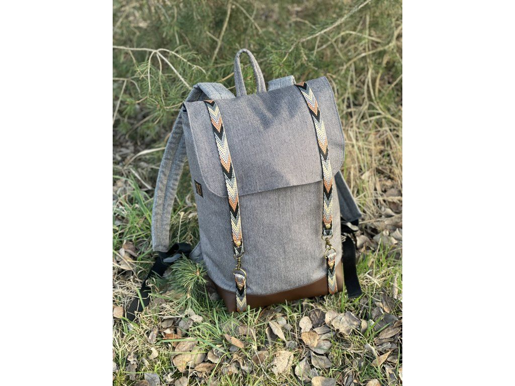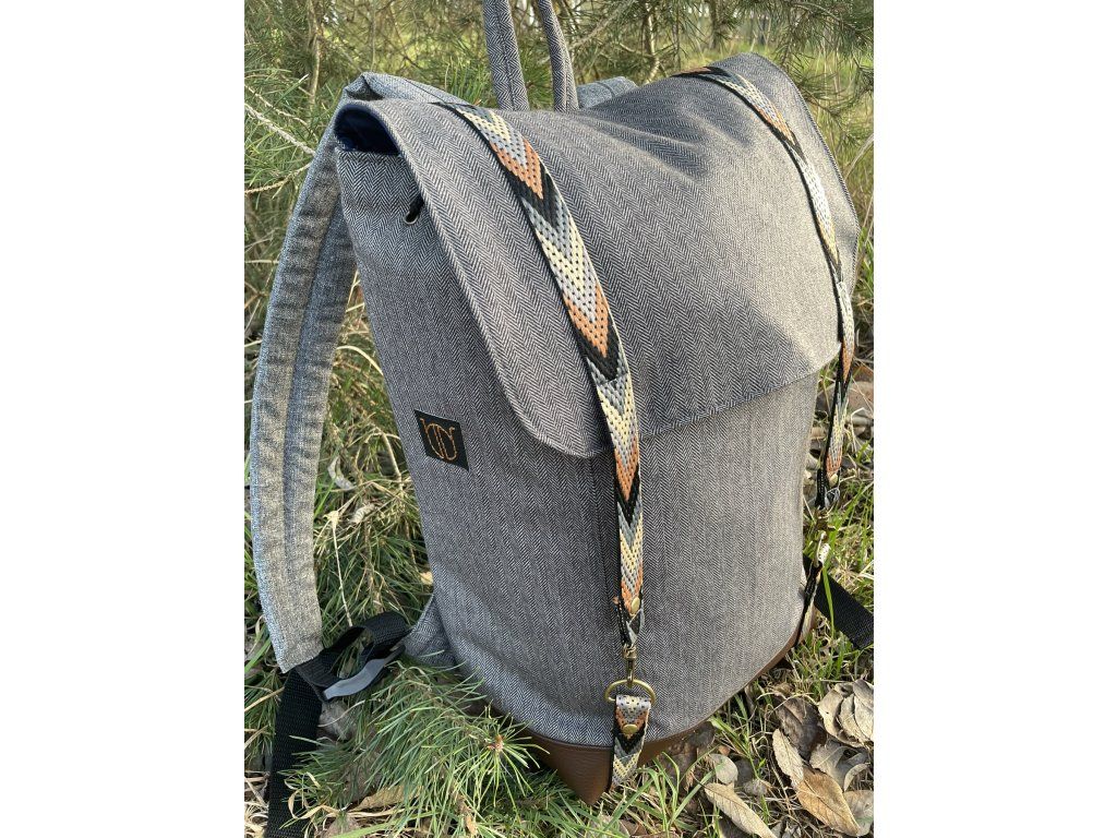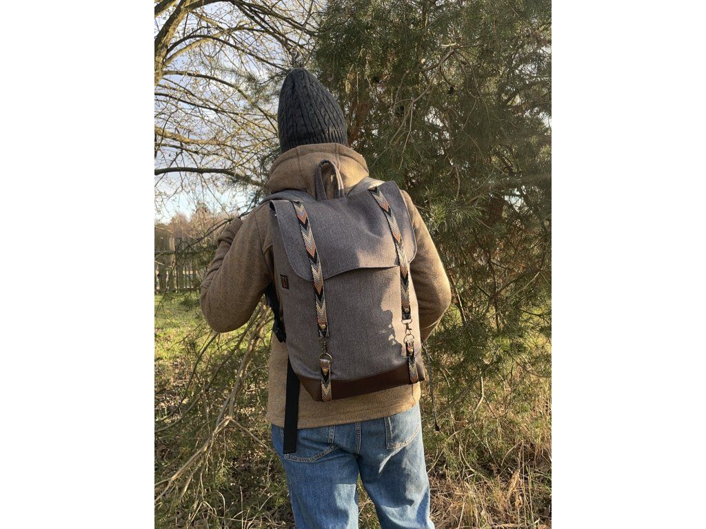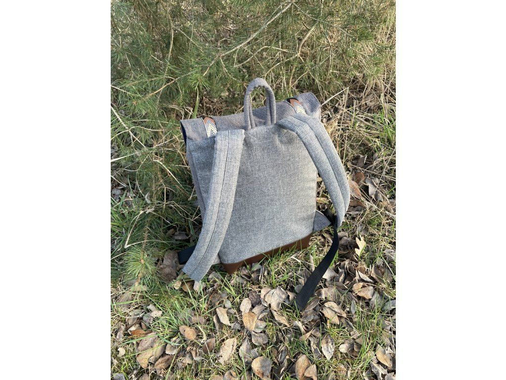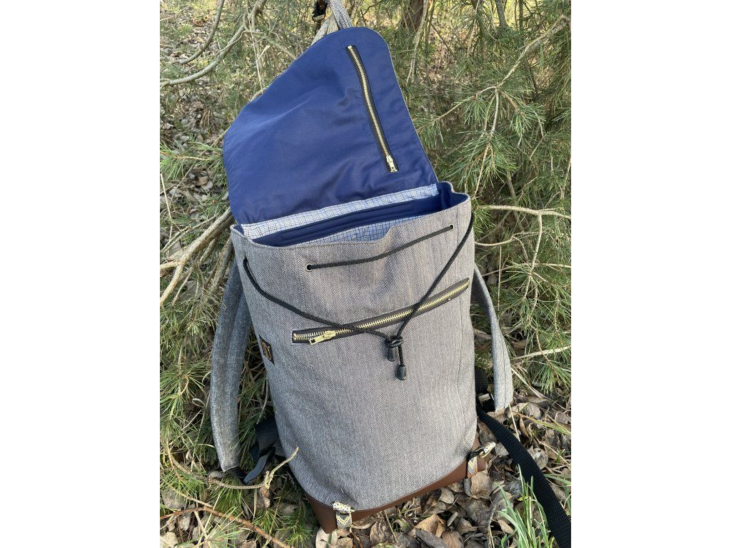 Částečně upcyklovaný batoh od Chrobáků o objemu 14 litrů je vyroben z oblekových kalhot po mém dědovi. Oblekové kalhoty příliš často nenosil, spíše montérky, takže látka je skutečně ve výborném stavu. :-) Podšívku jsem vykutila z upcyklovaných pánských košil, takový lehce bláznivý mix. Zádové popruhy a zadní část batohu jsou šedé žíhané kočárkoviny.