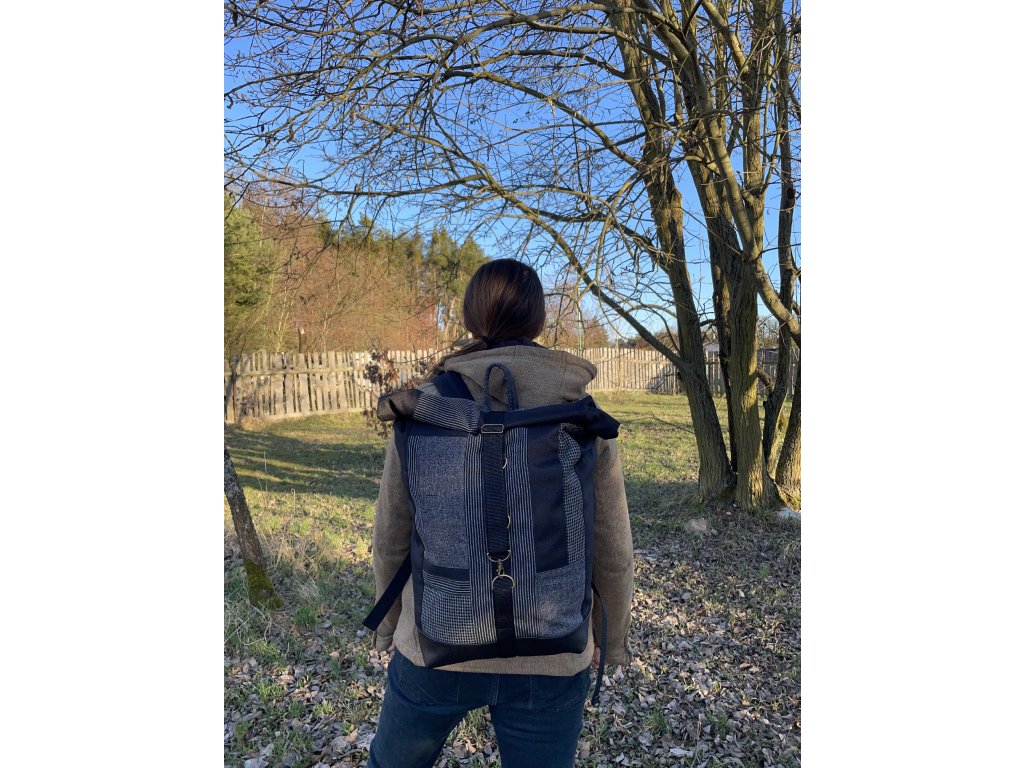 Částečně upcyklovaný batoh od Chrobáků o objemu 21 litrů je vyroben z odstřižků upcyklovaných obleků, doplněný o černou kočárkovinu. Podšívku jsem vykutila z kombinace upcyklovaných pánských košil, takový lehce bláznivý mix.