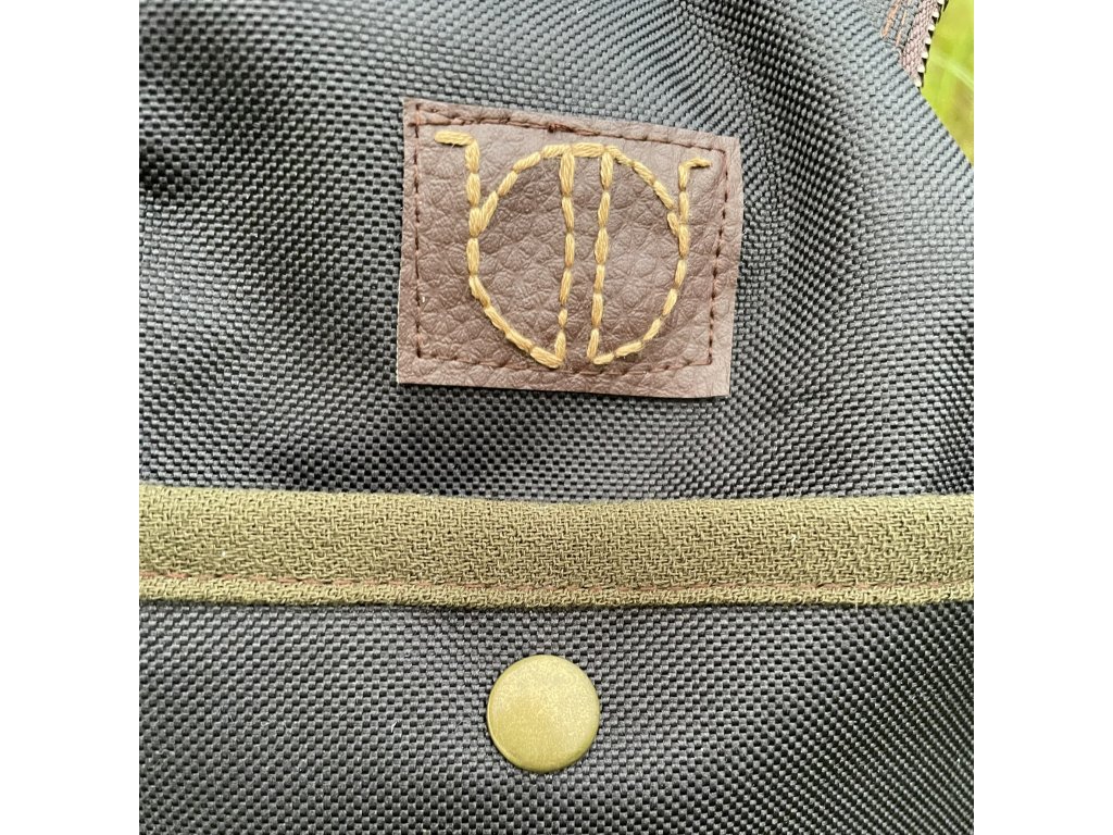 Veškeré části batohu jsou ušity buďto ze zbytků nepromokavé kočárkoviny, nebo jsou z kousků zbytkových či upcyklovaných látek a rovněž podloženy nepromokavou kočárkovinou, takže neproprší. Spodek batohu je vyztužen odolnou čalounickou koženkou v černé barvě, která zároveň slouží jako prevence zašpinění textilních částí při položení na zem.