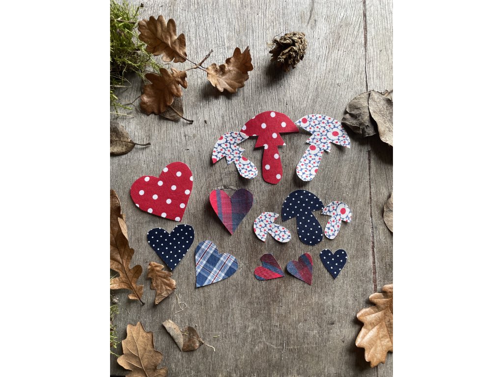 Tato sada obsahuje 12 kousků nažehlovaček ve tvarech srdíček a houbiček. Aplikace je velice jednoduchá, odstraní se podkladový papír, nažehlovačka se položí na požadované místo a jemným tlakem se zažehlí přibližně teplotou 200°C (režim bavlna) po dobu 2-3 minut, s jemným tlakem a krouživými pohyby.